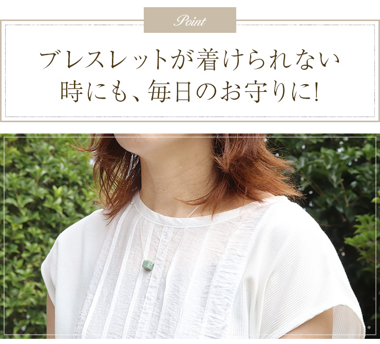 ネックレスですので、ブレスレットが身に着けられない方にも毎日のお守りとして身につけていただけます。