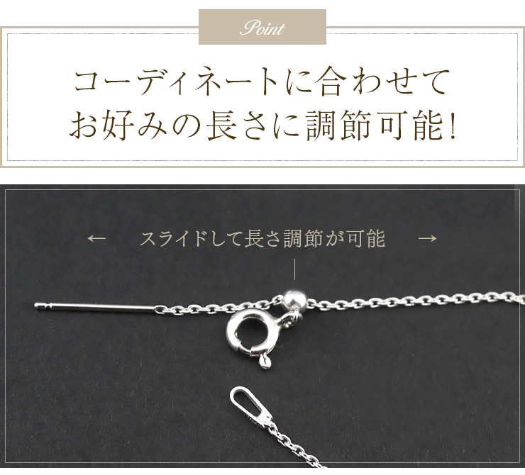 チェーンは全長50cmですが、スライドボールを動かすことにより、お好みの長さに調節が可能です。