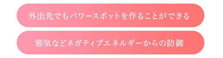 Enamour charm(エナマーチャーム)を1〜4枚ほど自分のいる場所に置く事で、邪気や雑念などが入りづらくなる。
