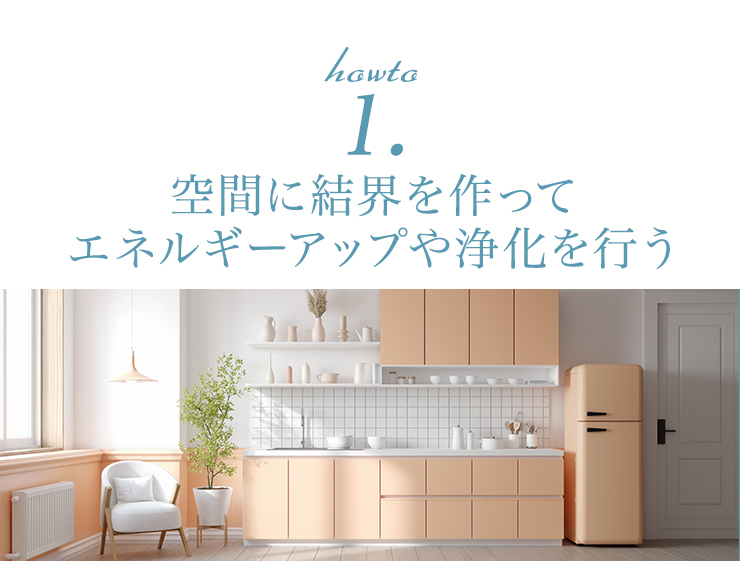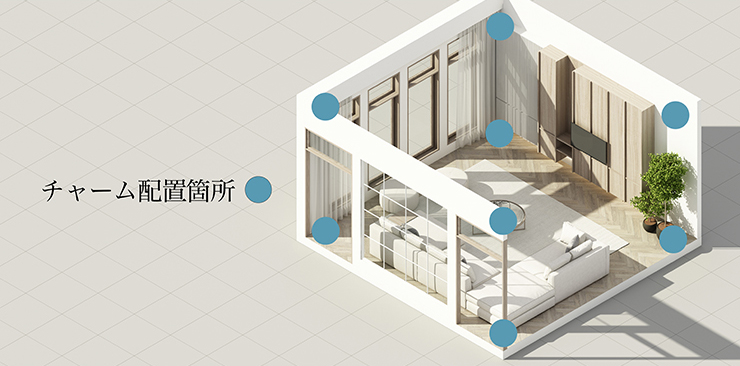 Enamour charm(エナマーチャーム)を部屋四隅の壁に、上下それぞれ4枚ずつ配置する。