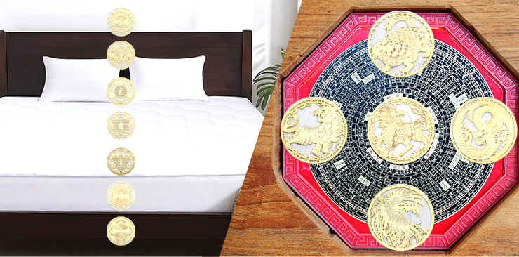 もしくは、Enamour charm(四神獣+麒麟)5枚セットをそれぞれ方位を合わせて体を囲むように布団の下に配置して就寝する。