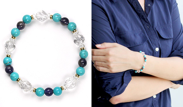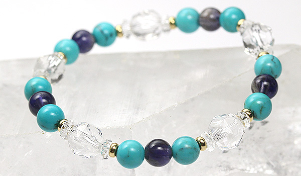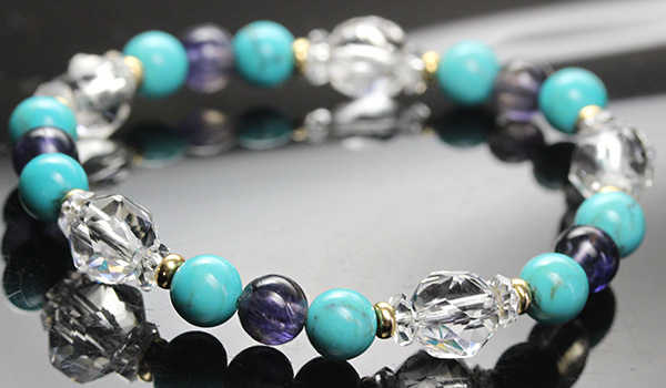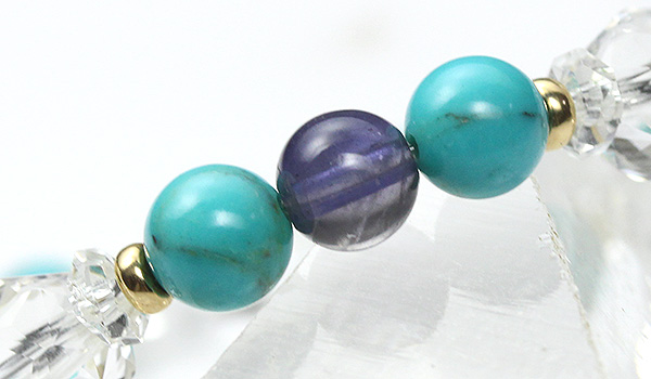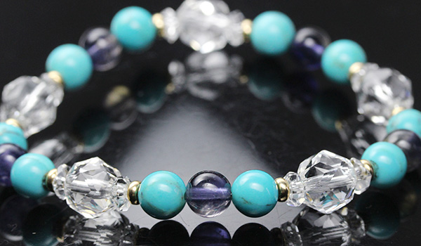 アイオライトが感情的な部分に作用し、場面場面において、冷静で的確な対応が出来るように、そしてターコイズが、問題を解決に導く為の知恵を、インスピレーションとして感じる助けとして働きます。
