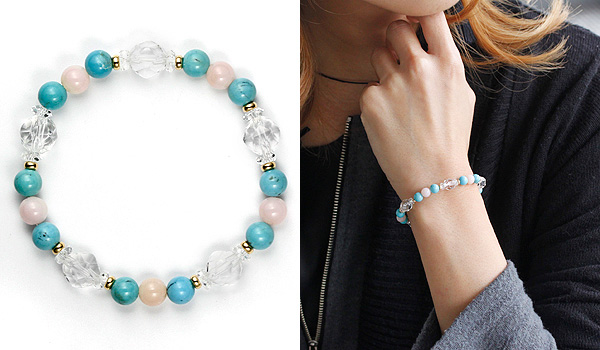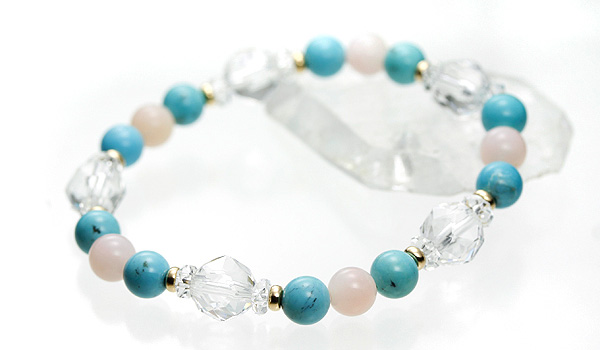 ピンクオパールが女性性という部分をカバーし、ターコイズは、災厄から身を守る為にインスピレーションを働かせる形で働きます。