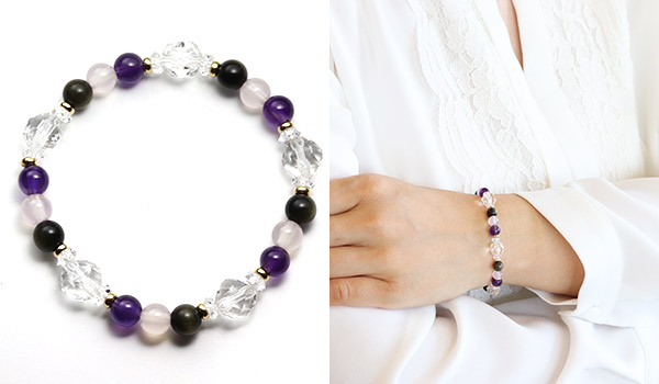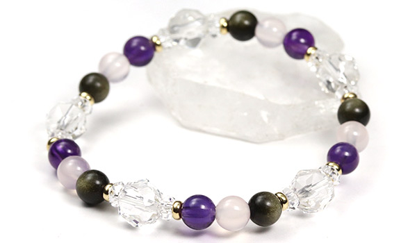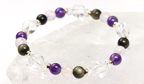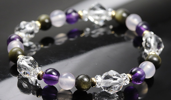 [★]アルケミブレス(ゴールデンオブシディアン・ピンクカルセドニー・アメジストAA) について