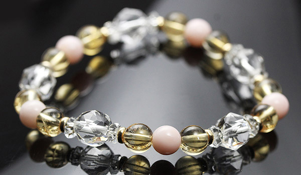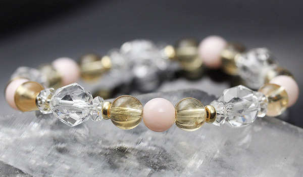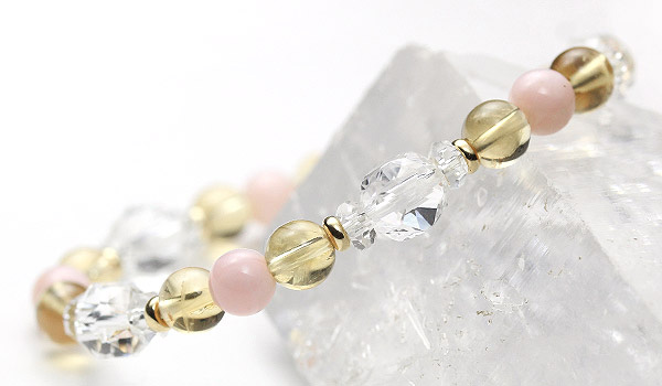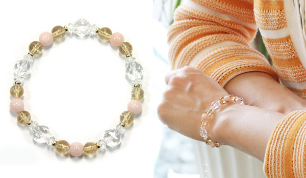 ピンクオパールが女性性を高め、周囲から大切にされるような要素を高め、シトリンがエネルギーの循環を正常化し、強化してくれます。