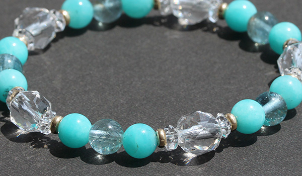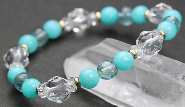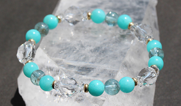 アマゾナイトが幸運を呼び込み、アパタイトが引き寄せ、それを吸着、強化するという組み合わせなのですが、例えばインカローズ等を組み合わせると、恋愛の力を、ルチルクォーツを組み合わせると金運を強化すると言うように、