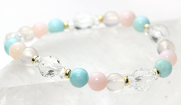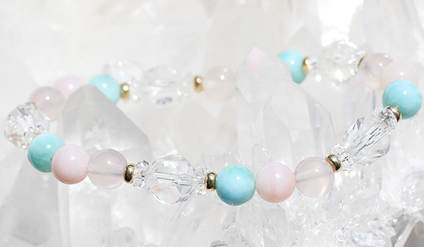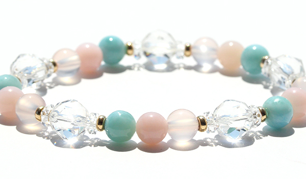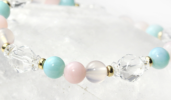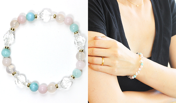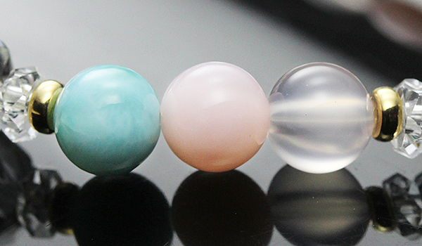 コミュニケーション能力を高め、相手が考えていることを読み取りやすくするラリマー。ピンクオパールは女性の魅力を高め、周囲から愛される力を発揮させます。