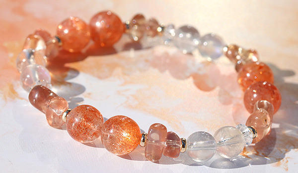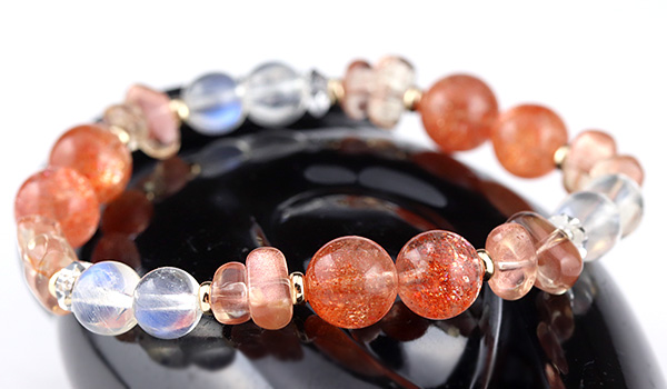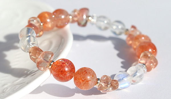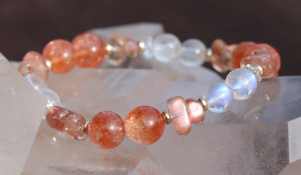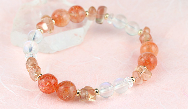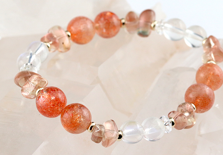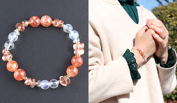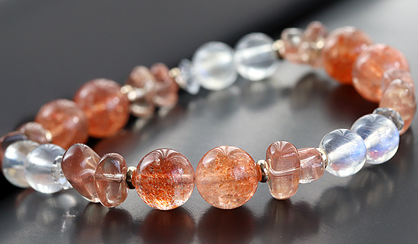 オレゴンサンストーンやロイヤルブルームーンストーンと比較すると、入手しやすく思える「サンストーン」ですが、今回ブレスレットに使用しているのは、サンストーンらしい