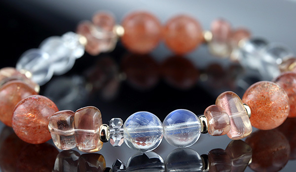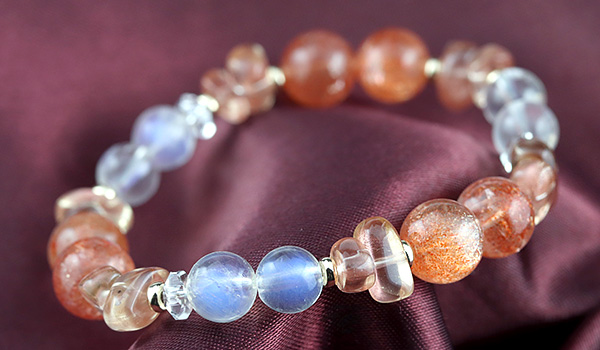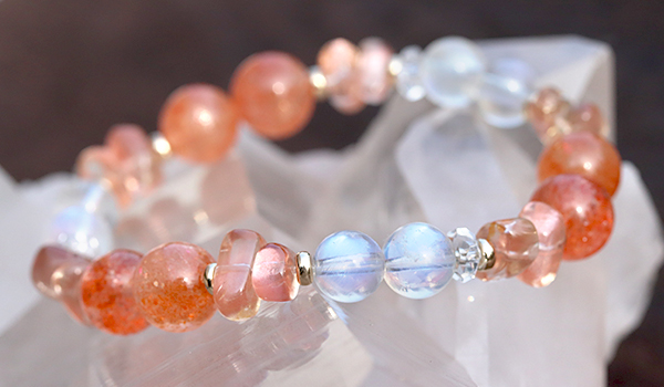 完全限定品ブレス【新世界】は、太陽を象徴するサンストーンと、月を象徴するムーンストーンとを組み合わせたブレスレット。