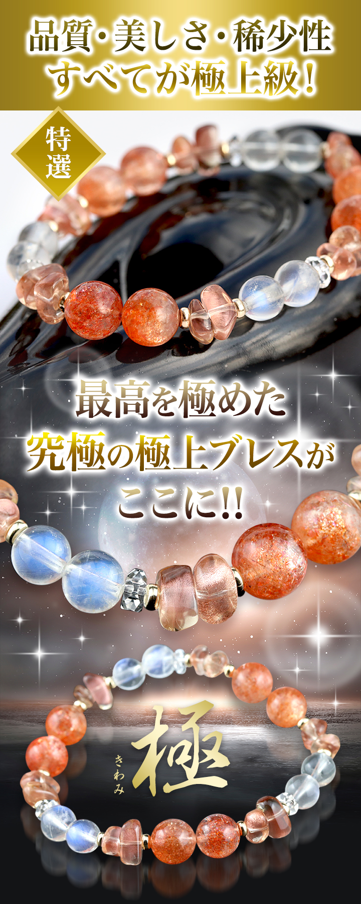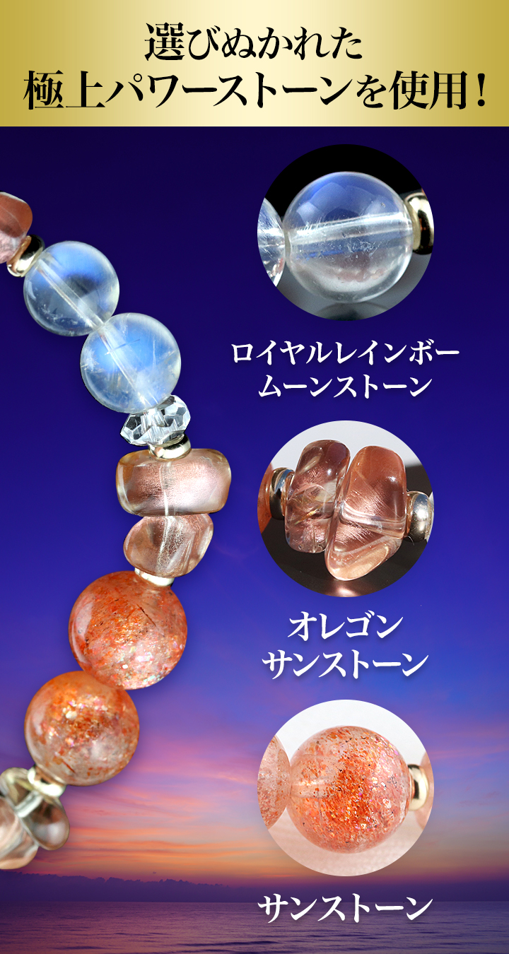 【特選品】[★]完全限定品ブレス【極Ver.60:新世界Ver.5】(ロイヤルブルームーンストーンAAAAA・オレゴンサンストーン[さざれ]・サンストーンSA) について