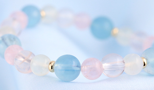 【ラスイチ】[★]完全限定品ブレス【幸せの誓いVer.4】(サンタマリアアクアマリン・マダガスカル産モルガナイト・スターローズクォーツAAA・ムーンストーンAAAA) について