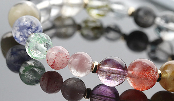 パイライトインクォーツ10〜10.5mm、ガーネットインスモーキークォーツ10〜10.5mm、スモーキーガーデンクォーツ10〜10.5mm、レピドクロサイトインクォーツ8.5〜9mm、プラチナクォーツAAA8mm、スティブナイトインクォーツAAA'6mm、エピドートインクォーツAA8〜8.5mm、ホワイトトルマリンインクォーツ8.5〜9mm、オイルインクォーツ7.5〜8mm、エンジェルラダーAAA'9mm、ホワイトガーデンクォーツ9.5〜10mm、デュモルチェライトインクォーツAAA'8.5mm、マダガスカル産グリーンファントムクォーツAA+7mm、アフリカンストロベリークォーツAAA6〜6.5mm、リチウムファントムクォーツAAA6.5〜7mm、セイクリッドセブンAAA8mm、ファイアークォーツAAA8.5mm、カコクセナイトインクォーツSA8.5mm、ルチルクォーツAAA'10〜10.5mm