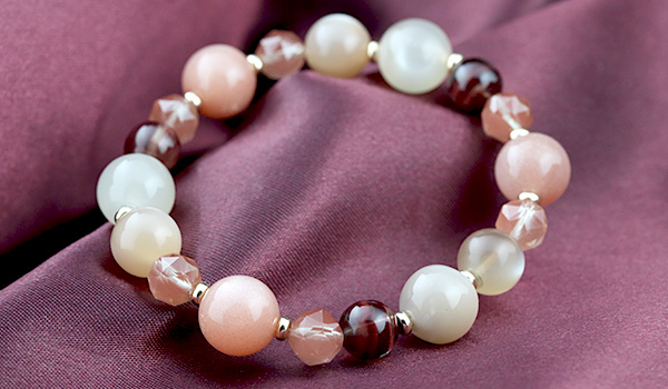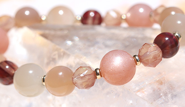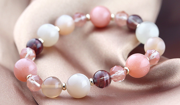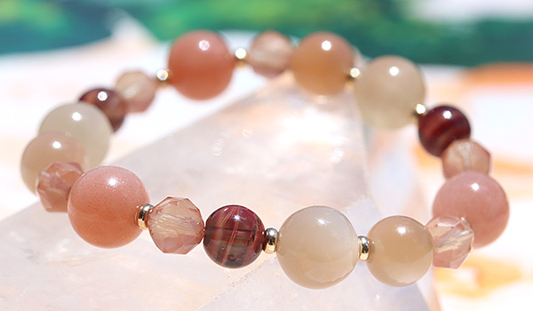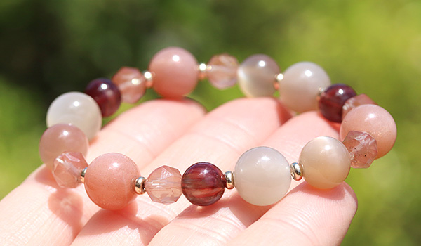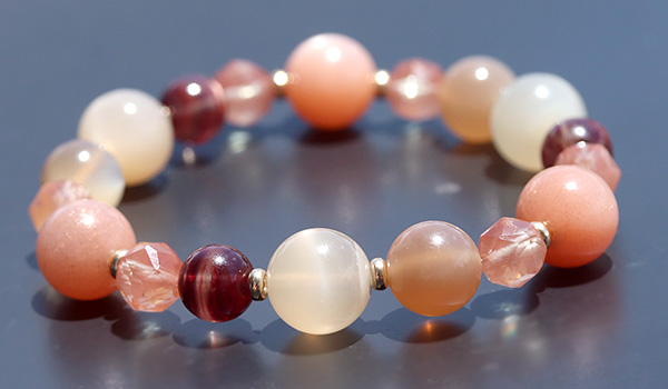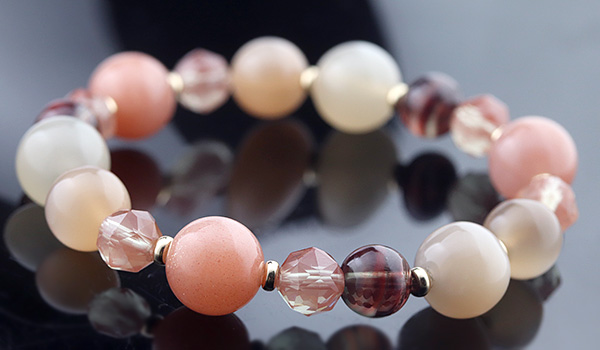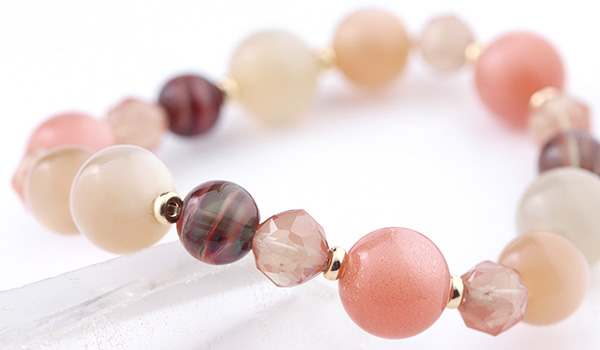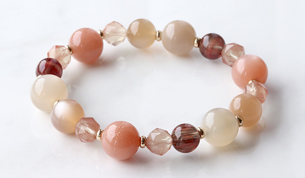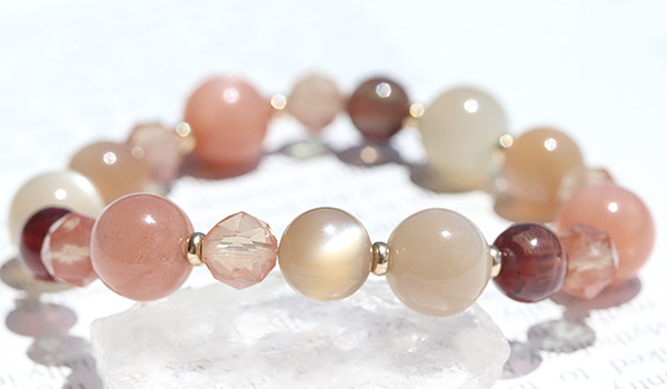 ●繊細な美しさを持つ2種類の長石たちで作り上げた、神秘的な雰囲気のブレスレット