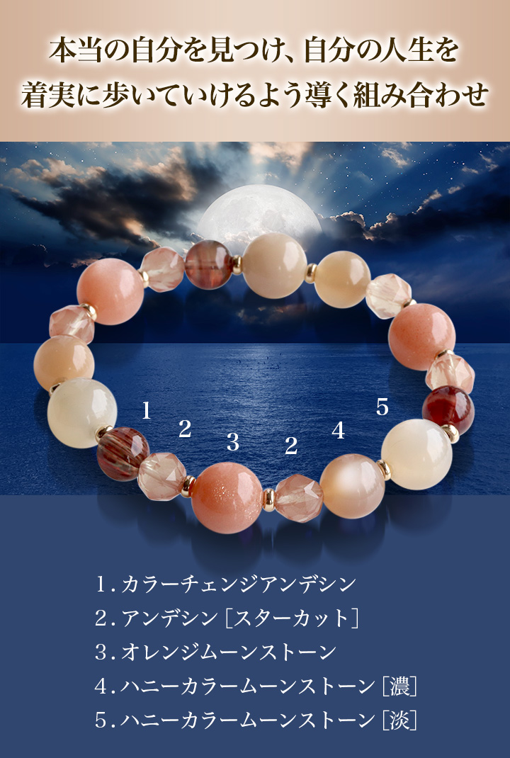 [★]完全限定品ブレス【満月の抱擁】(オレンジムーンストーン・アンデシン[スターカット]・カラーチェンジアンデシン・ハニーカラームーンストーン[濃・淡]) について