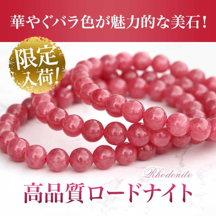 ロードナイトは和名をバラ輝石といいますが、その名前にふさわしい美しい色合いは、