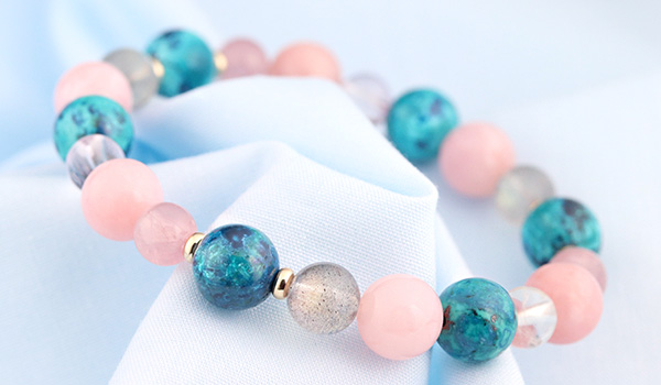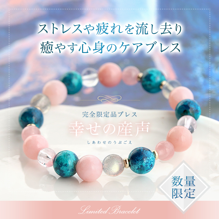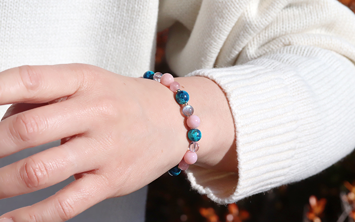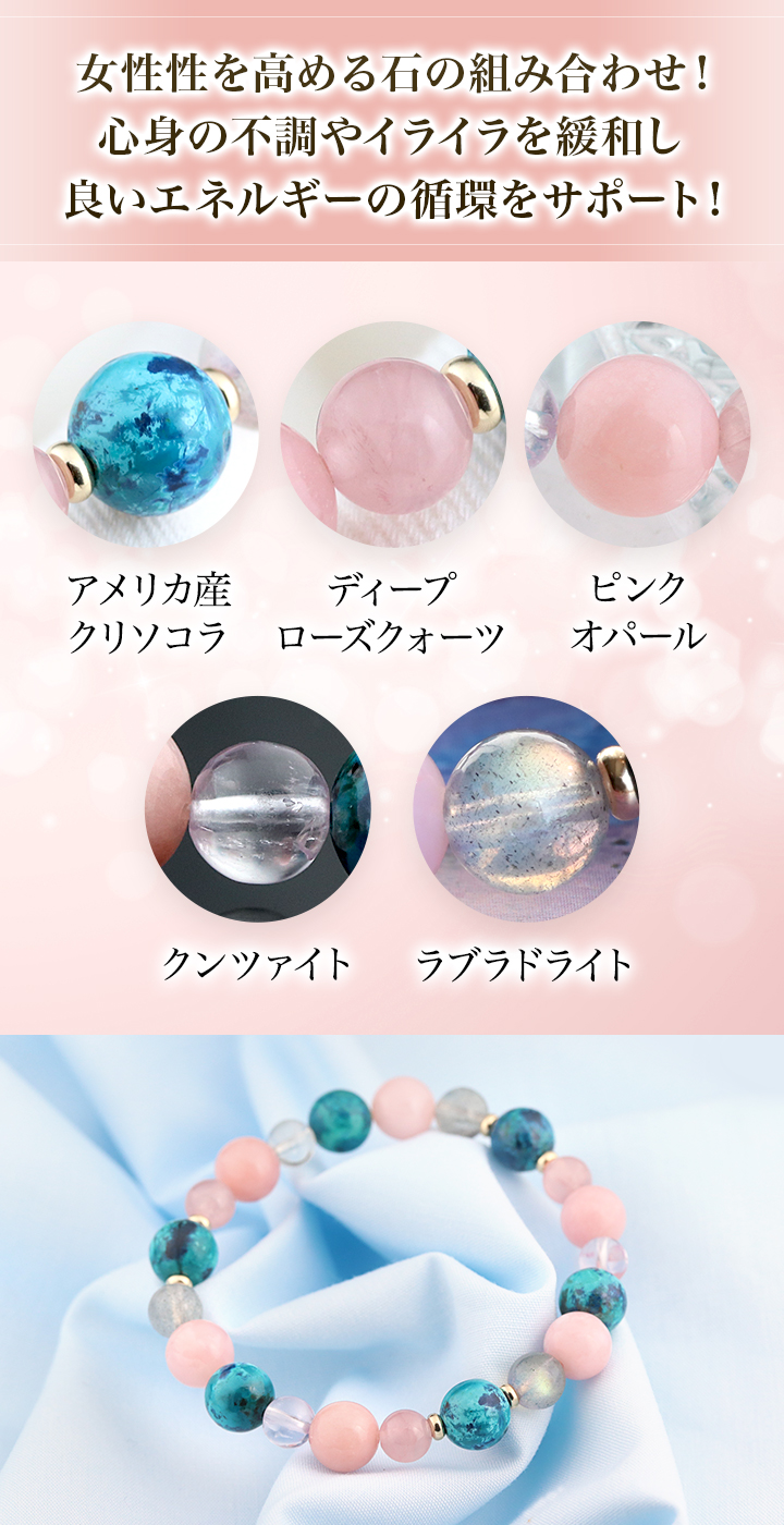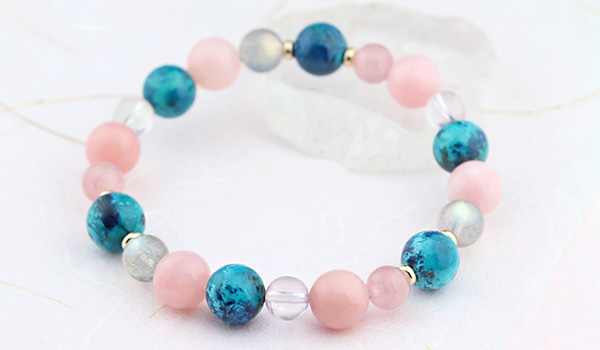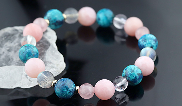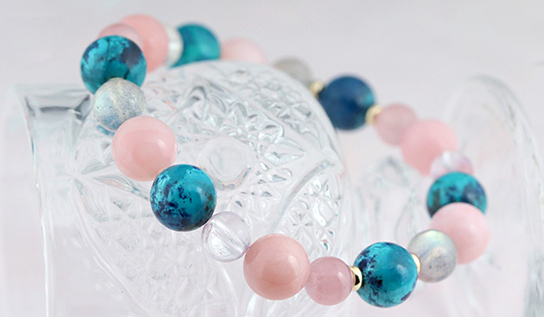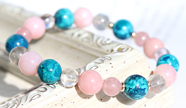 [★]完全限定品ブレス【幸せの産声】(アメリカ産クリソコラ・ディープローズクォーツAA・ピンクオパールSA・クンツァイトAAAAA・ラブラドライトSA) について