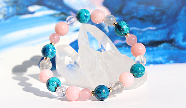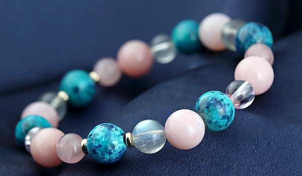 例えば女性性や母性を象徴するクリソコラと、女性ホルモンの分泌を活性化させると言われるピンクオパールであれば、妊娠中の女性が持つことで