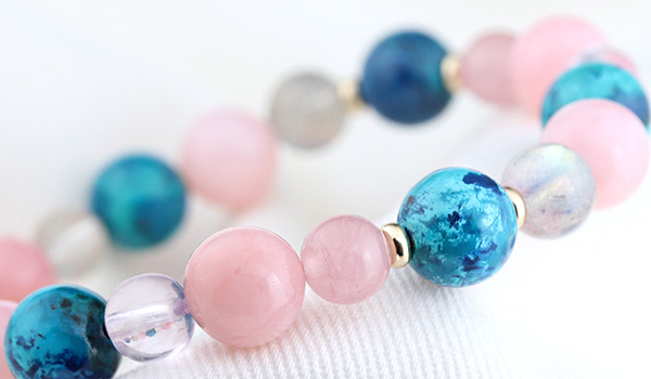 幸せを感じる力を強めるピンクオパールと、愛のエネルギーを強く持つローズクォーツの組み合わせは、