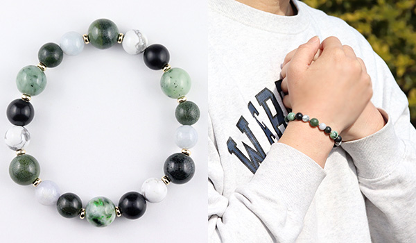 稀少な国産銘石を三種類も使用したブレスレットです。