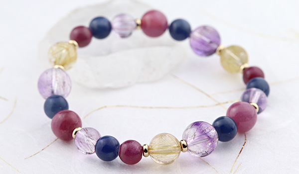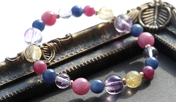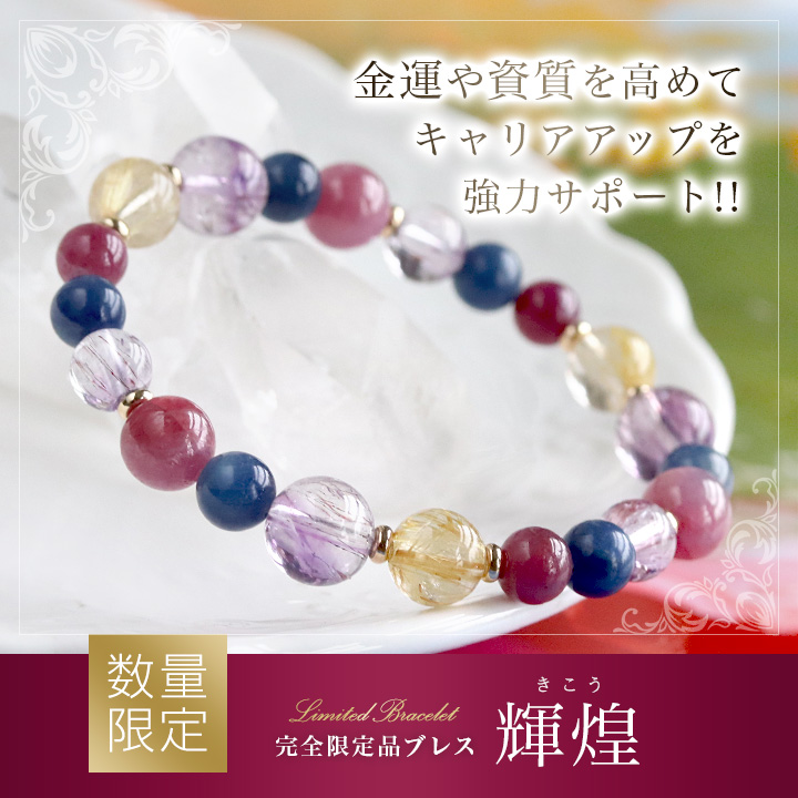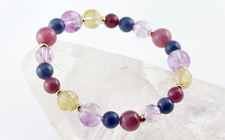 [★]完全限定品ブレス【輝煌Ver.2】(ルチルクォーツSA・ルビーAAA'〜AAA・ブルーサファイア・カラバルアメジストエレスチャルクォーツAA+) について