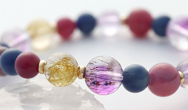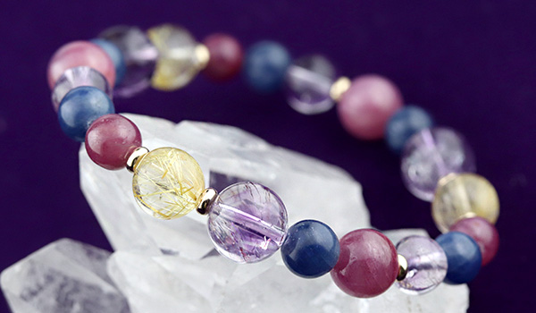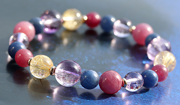 この4種類の石を、エネルギーのバランスを見ながら組み合わせることで、強い力を発揮しつつも、ちゃんと持ち主に寄り添ってくれるブレスレットとなりました。