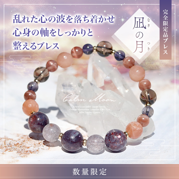 [★]完全限定品ブレス【凪の月】(アベンチュリンアイオライト・セイクリッドセブン・オレンジムーンストーン[128面カット]・スキャポライトキャッツアイAAA・アイオライトAAA・スモーキークォーツ) について