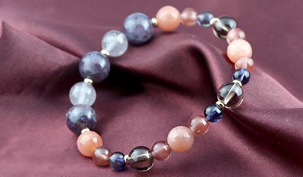 心身を落ち着かせるエネルギーを持つとされるアイオライトをメインにパワーストーンを組み合わせています。
