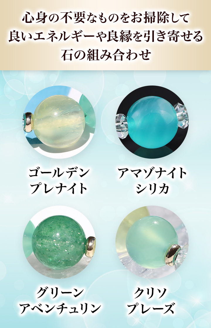 ●運気の入れ替えをお手伝いする”プレナイト×アマゾナイトシリカ×グリーンアベンチュリン”