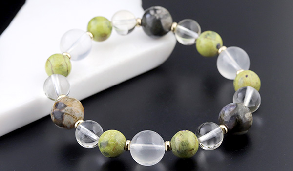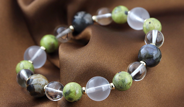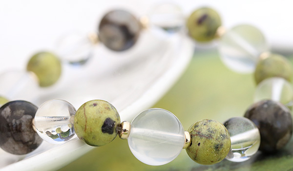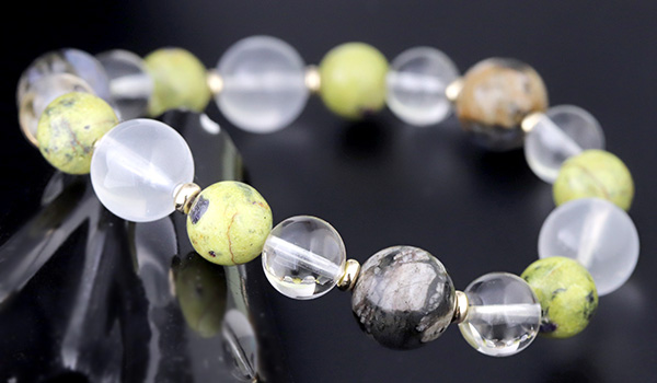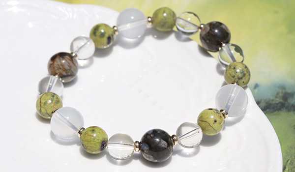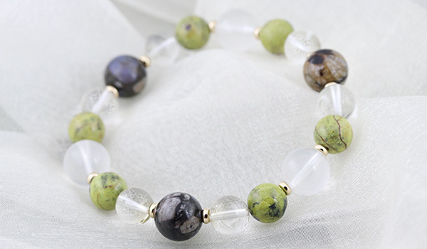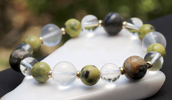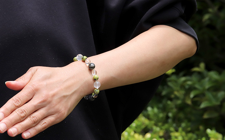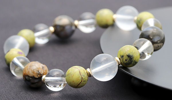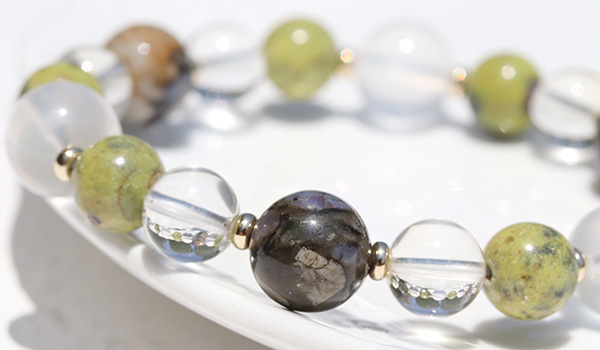 と、どの石も内面に強く働きかけるエネルギーを持ちますので、組み合わせたときには「癒やし」の奥深さを感じさせるヒーラー的存在のブレスレットとなりました。