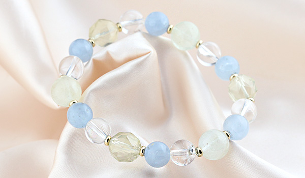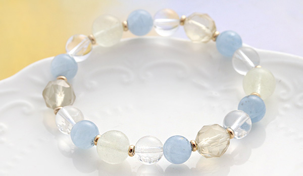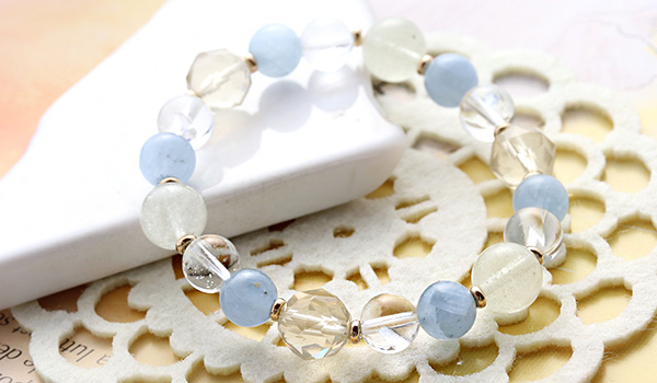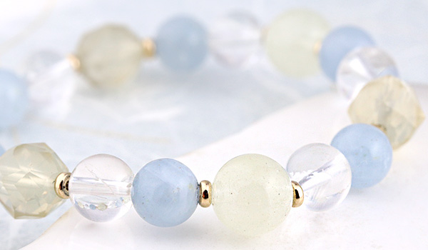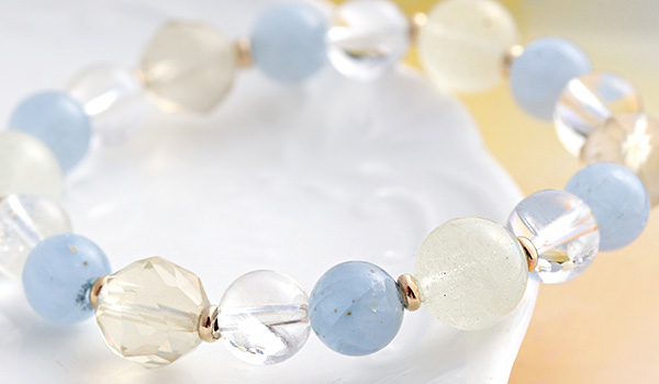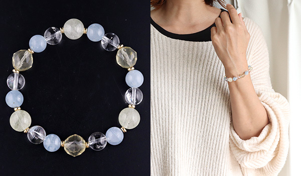 特に、このブレスレットで注目していただきたいのが、初入荷となるセレスタイトです。