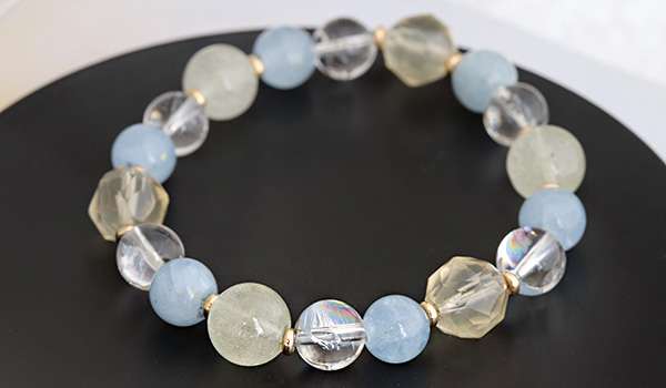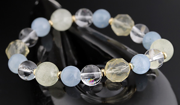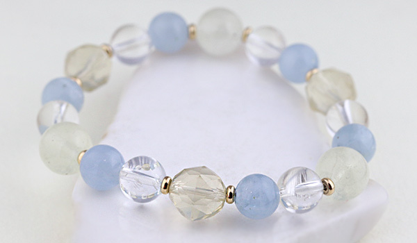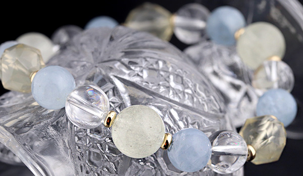 完全限定品ブレス【月の清らぎ】には、優しくも清らかな輝きの月光をイメージして、気品があって美しい四種類のパワーストーンを組み合わせました。