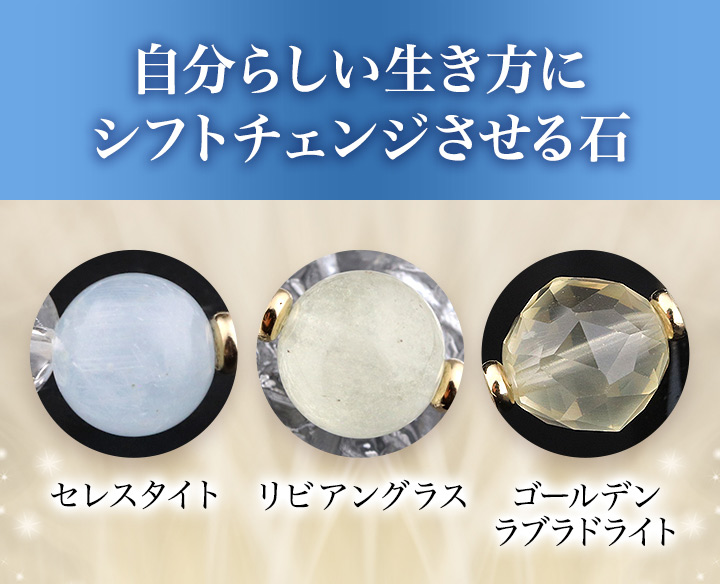 ●魂までも癒やす強力な浄化力を持つセレスタイト・リビアングラス・ゴールデンラブラドライトが、本来の輝きを取り戻させて自分らしい生き方にシフトチェンジさせる