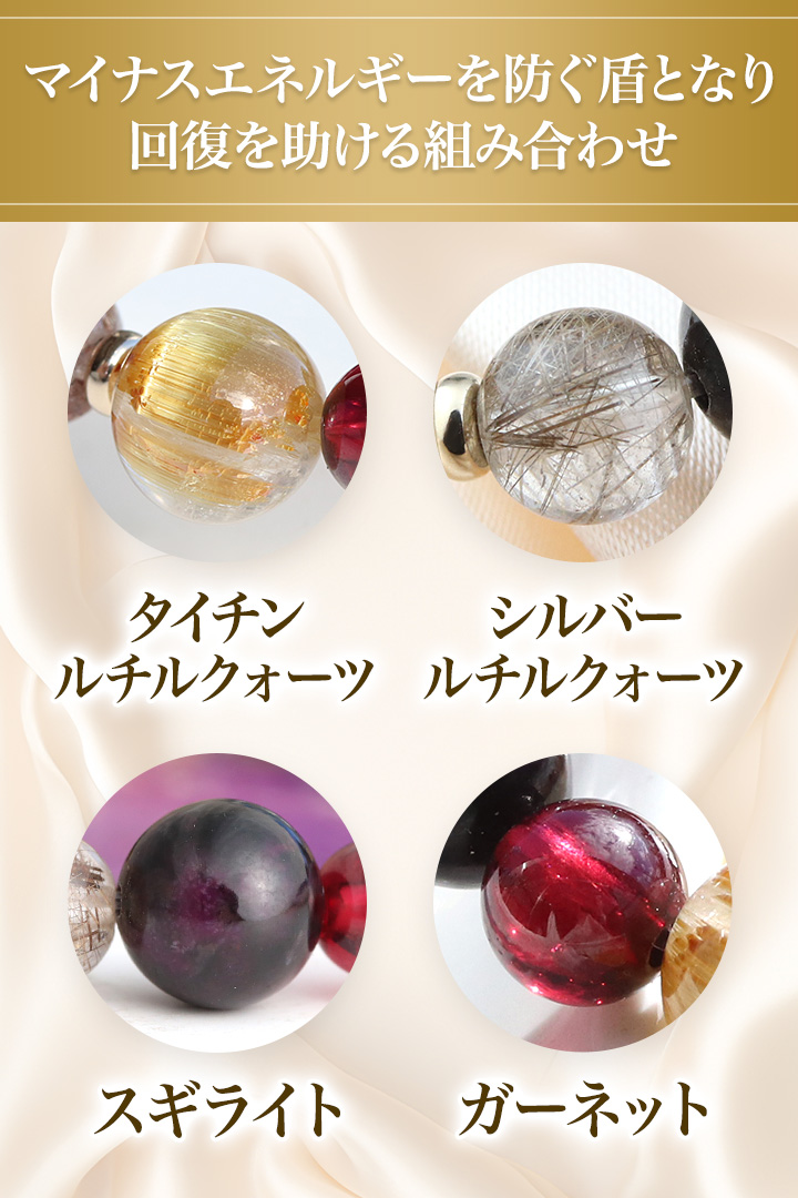 [★]完全限定品ブレス【祓い清めVer.5】(スギライトAAA・シルバールチルクォーツAAA・ガーネットAAA’・タイチンルチルクォーツAAAA) について