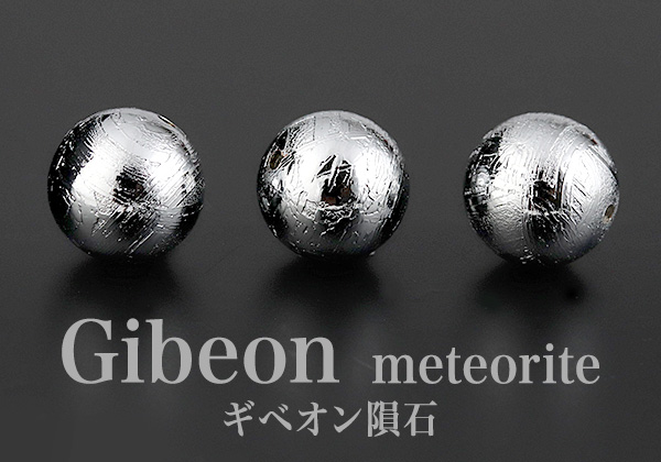 また、メタリックな輝きを持つメテオライト[ギベオン隕石]は、地球の引力に導かれ宇宙から飛来してきた、主に鉄とニッケルからなる鉄隕石になります。