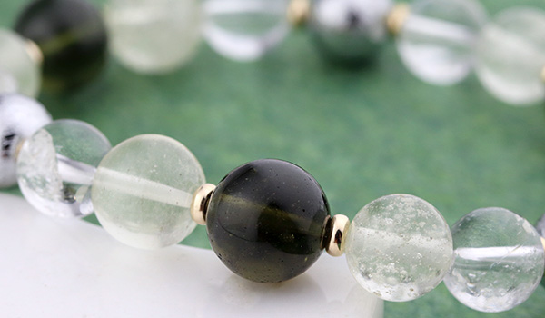 モルダバイト9〜9.5mm、リビアングラス8mm・9〜9.5mm、メテオライト[ギベオン隕石]8mm、レムリアンシードクリスタル8mm