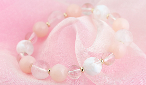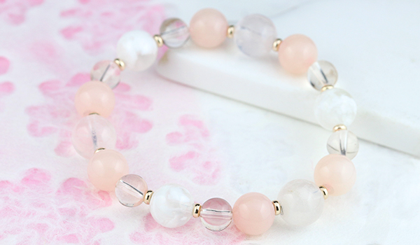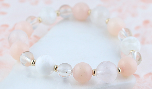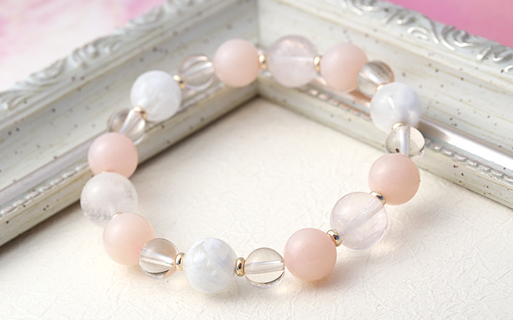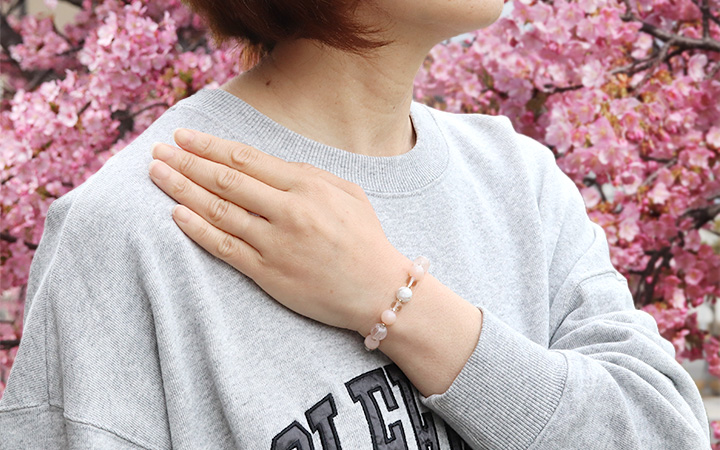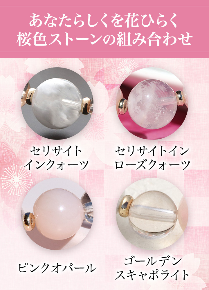 という四種類のパワーストーンを使用した、桜の季節に良く似合う春色カラーのブレスレットです。