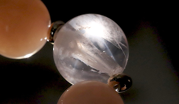●絹のような美しい光沢を持つ”セリサイト”を内包する水晶とローズクォーツ
