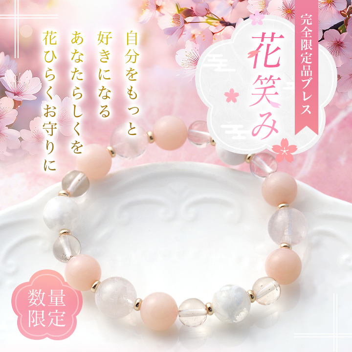 このブレスレットを身に着けて、毎日を素敵な笑顔で過ごすことができるように、自分らしい美しさを手に入れることができるようにという願いを込めました。