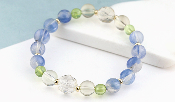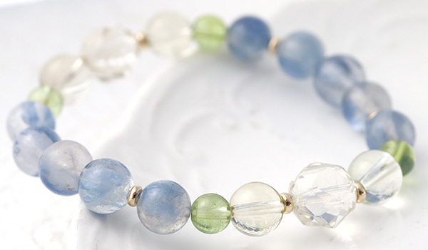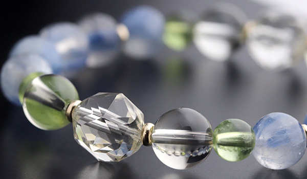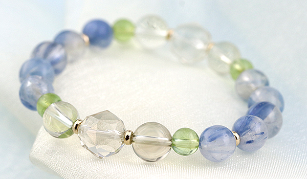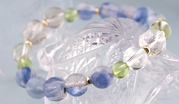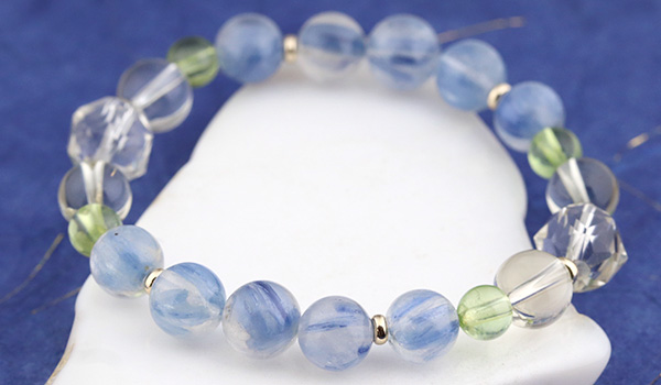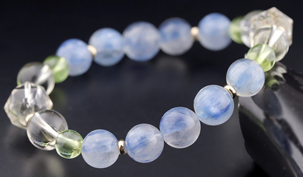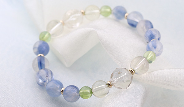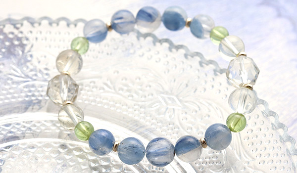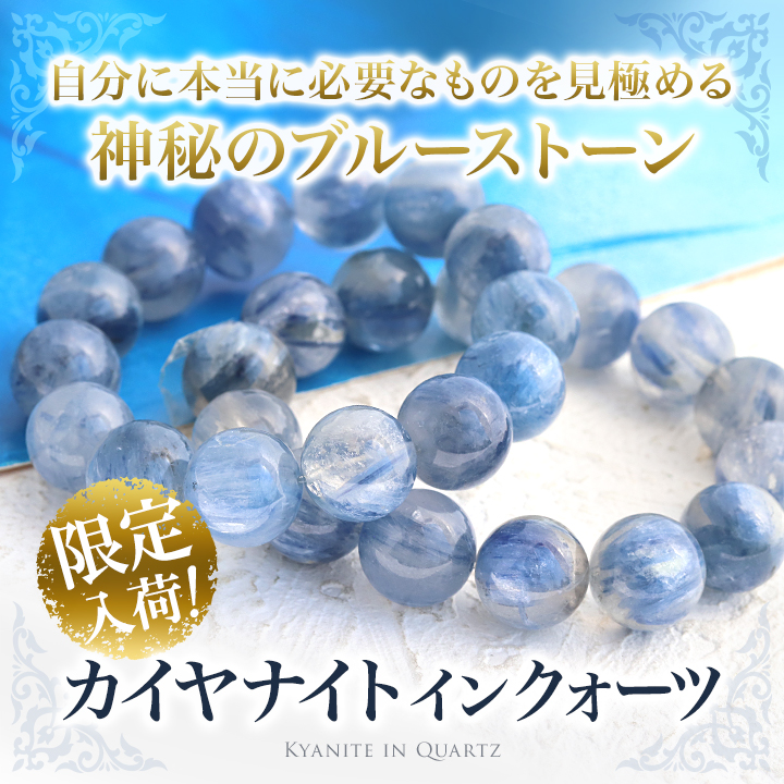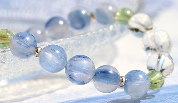 透明感のある水晶の中に、淡く優しい青色のカイヤナイトが入りこんだような、神秘的な見た目に心奪われる”カイヤナイトインクォーツ”