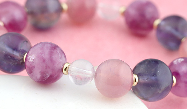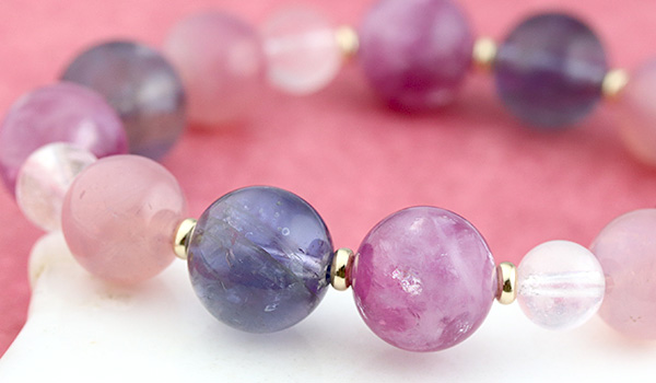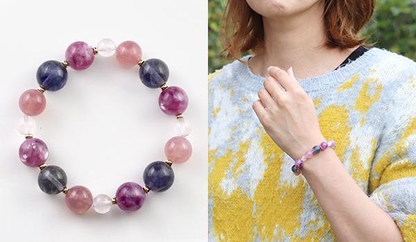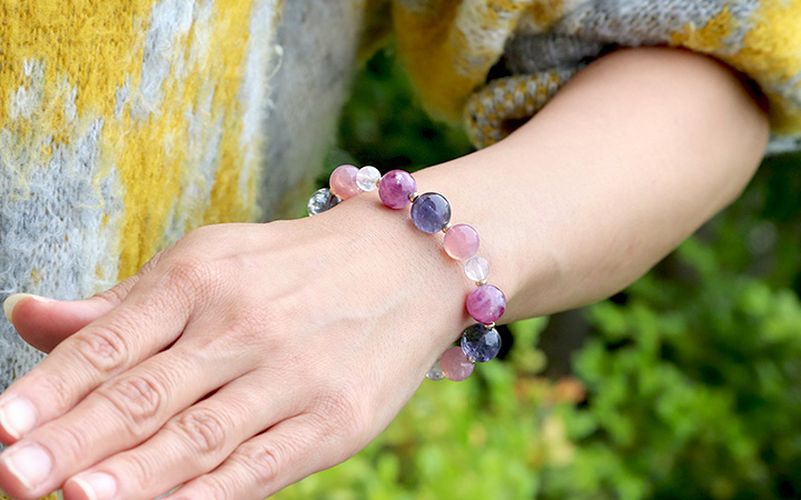紫系のカラーバランスが抜群で、華やかさも落ち着きもある美しいブレスレットに仕上がりました。