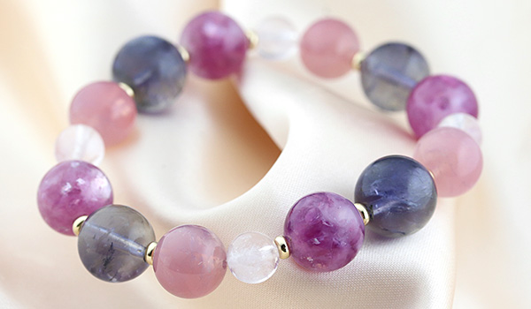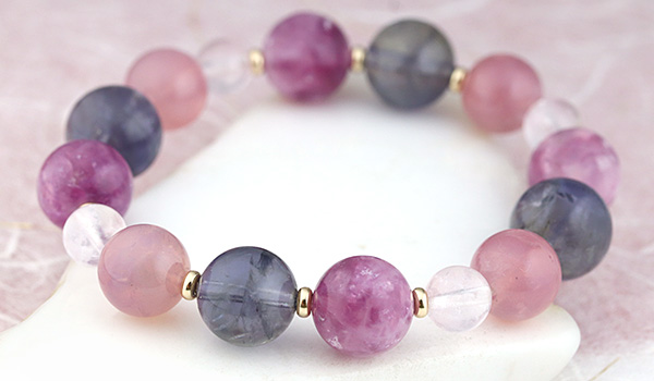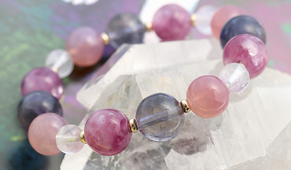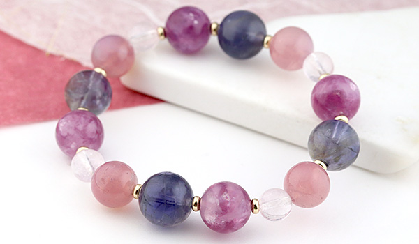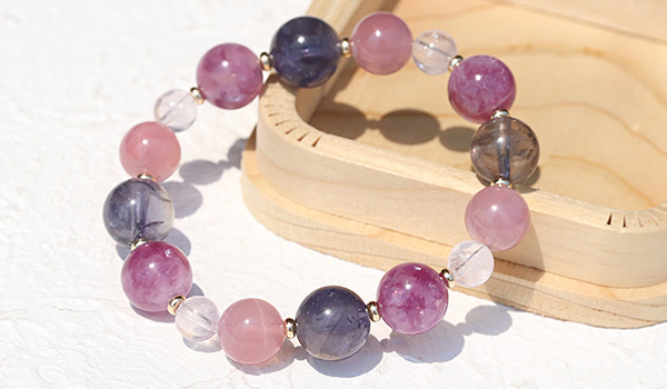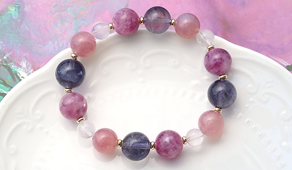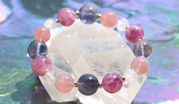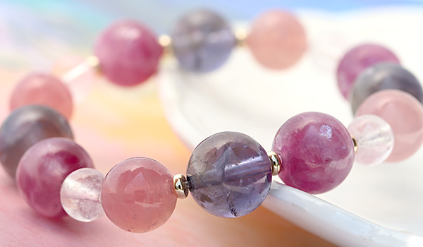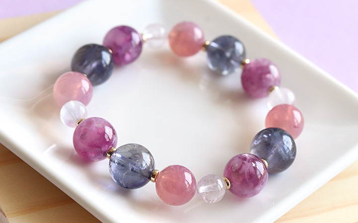 [★]完全限定品ブレス【優芽(ゆめ)】(ピンクレピドライト・アイオライト[ライトカラー]・マダガスカル産ディープローズクォーツ・ピンクモルガナイトAAA') について
