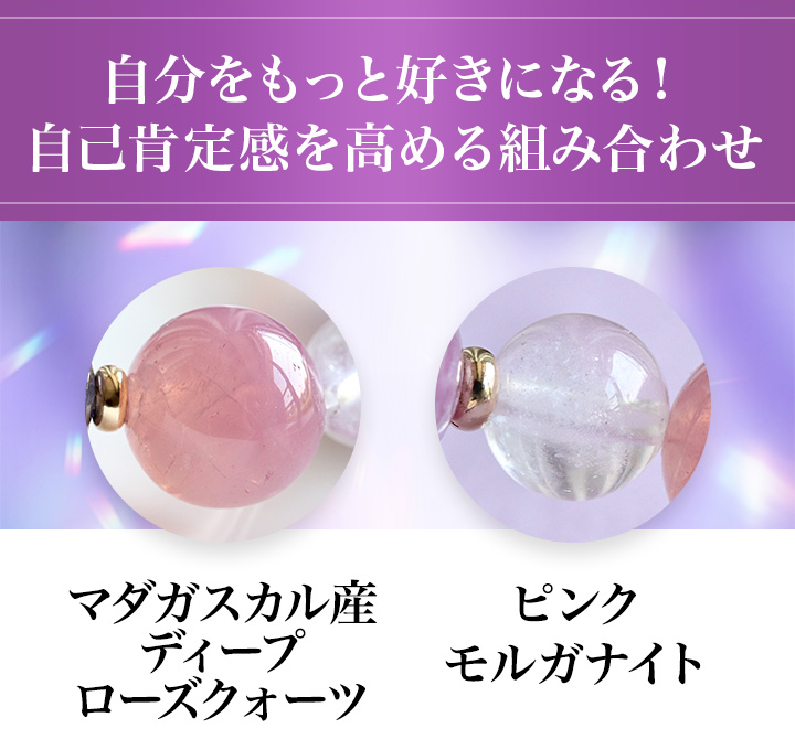●自信がなくて、変化に憶病になる方をサポートし、自分なら大丈夫と前向きな気持ちをもたらすローズクォーツ×モルガナイト