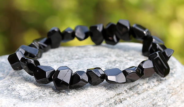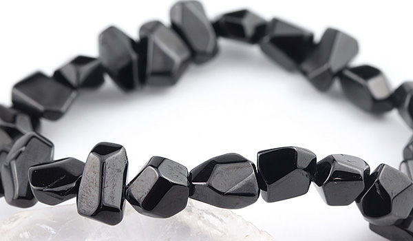 ●多面的に磨き上げられ、漆黒のつややかな輝きが美しいブラックスピネルのさざれを使用したブレスレット