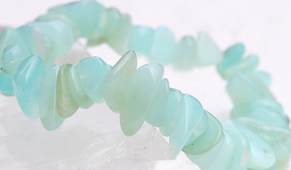 瑞々しく清涼感に満ちたミントグリーンの色合いが美しい、ブルーオパールのさざれパーツを素通しにしたブレスレットが、数量限定で登場しました!
