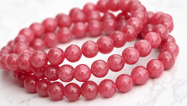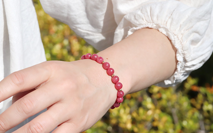 ギリシャ語でバラを表す「rhodon」が名前の由来であり、さらには和名も「バラ輝石」と、バラという単語と縁が深いロードナイトは、その名の通りバラ色をした