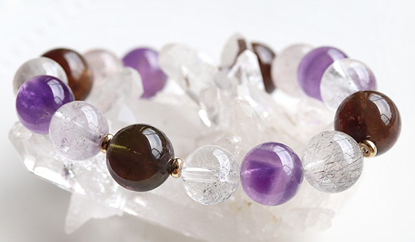 それぞれのクリスタルが持つ周波数は共鳴しながら、着ける人の波動を繊細に、しかし力強く引き上げてくれるため、人生の転換点に寄り添う守護ブレスレットとなるでしょう。