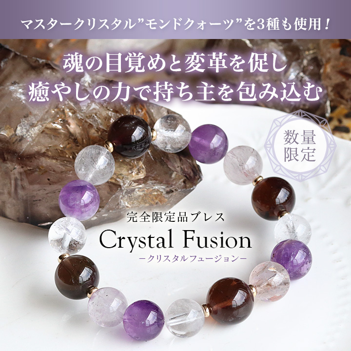 完全限定品ブレス【Crystal Fusion〜クリスタルフュージョン〜】は、世界中で産出する水晶の中でも特別な力を秘めた水晶を組み合わせたブレスレットです。