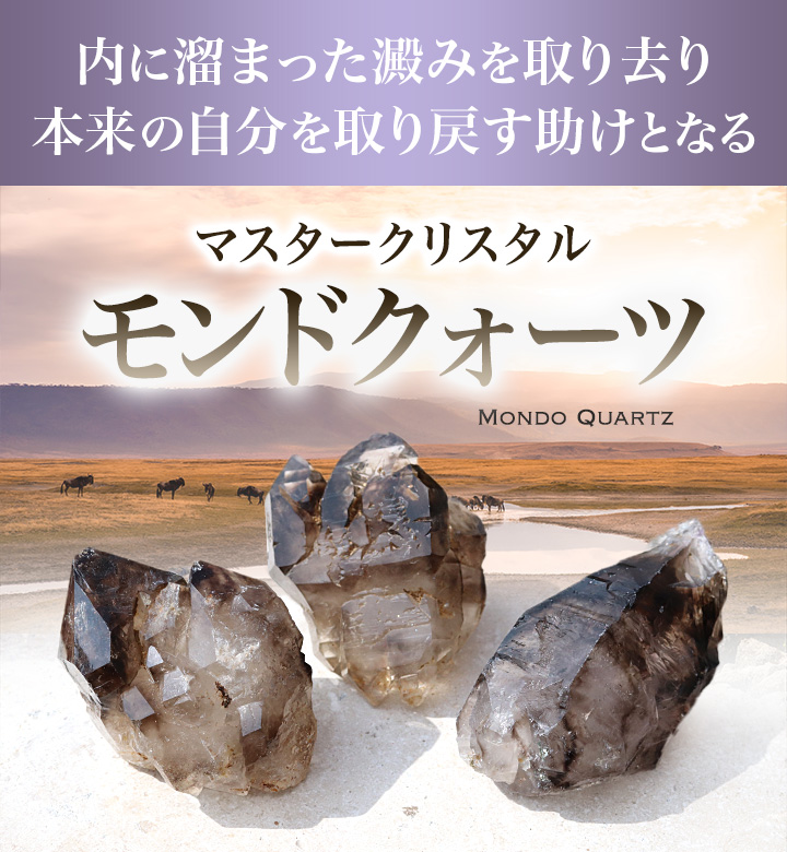 「スモーキータイプ」や「アメジストタイプ」のモンドクォーツは、心の奥に溜め込んだ不安や恐れ、過去の傷をじんわりと癒していけるように働きかけます。