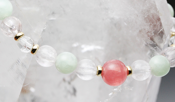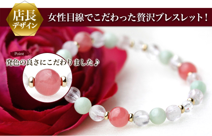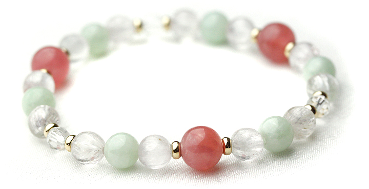 女性から人気の高い石を厳選し、とびっきり可愛らしい見た目に仕上げたこちらのブレスレットは、恋愛運だけでなく普段のお守りとしても頼りになってくれそうです。