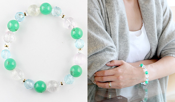 クリソプレーズとクンツァイト、ブルートパーズの組み合わせは、